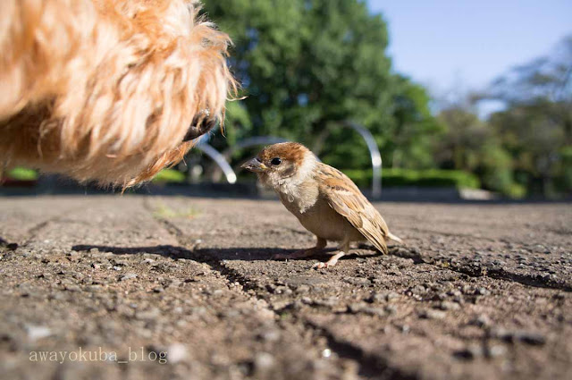 公園にちょこんと佇むスズメ。なんとなく儚げな印象があります。